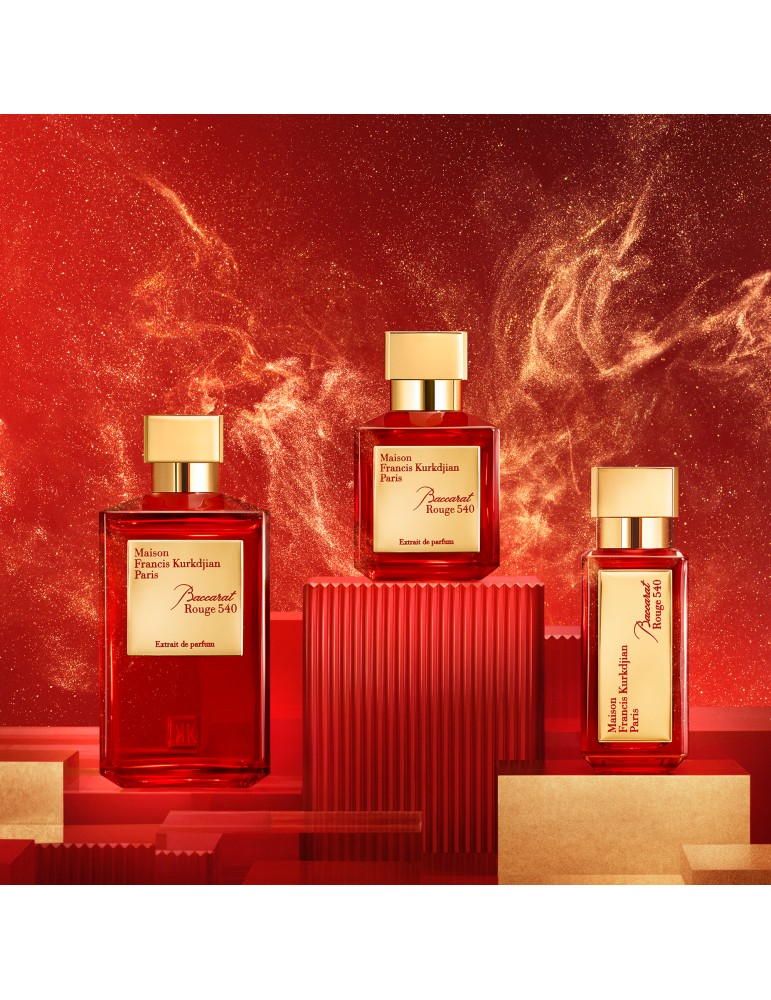 Moltiplicando l’intensità dell’Extrait, il flacone gioca anche con la luce. La sua estetica è impreziosita da un rivestimento rosso sgargiante che ricorda l'iconico rosso Baccarat. L'Extrait de parfum Baccarat Rouge 540, al contempo intensamente avvolgente e arioso, incarna la profusione e la fusione degli elementi che solo l’arte del profumiere e la saggezza del tempo sanno addomesticare.